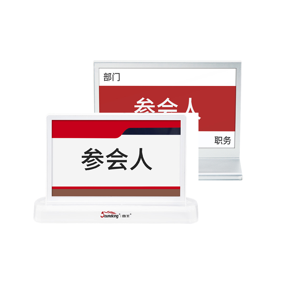 墨水屏會議桌牌采用黑、白、紅、2灰階直立雙面橫屏顯示,底座本體一體結構,利用電子墨水 (E-INK)技術制作,是一種智能化的會議工具。無背光不傷眼,使用時間長,無需外接電源, 它具有低功耗、護眼、易于更新等特點。方便快速地查看人名信息,實現參會人員識別與自主入場,可實現批量編輯,極大程度避免了傳統桌牌漏做、做錯、準備倉促等問題,提高會議效率。 也能為企業節省能源成本,更加環保和可持續。