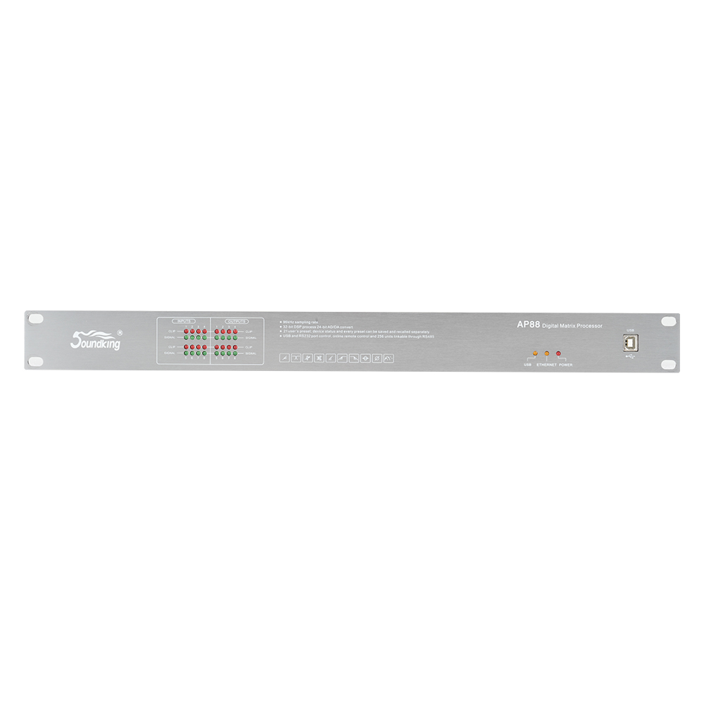 AP88處理器是專為中低端領域打造的高性價比處理器,軟件界面模塊分明,操作簡單,多個用戶預設,整機狀態和每個預設都可以單獨存儲和調用。具有密碼保護功能,使設備更安全。可通過RS232或者RS485進行遠程控制,方便客戶智能化控制。