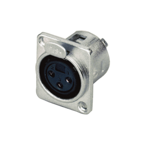 三芯卡儂母插座外殼采用高強度鋅合金材質堅固耐用, 鍍銀觸點保證了信號穩(wěn)定傳輸。標準的D型法蘭通用尺寸適合工程安裝。
