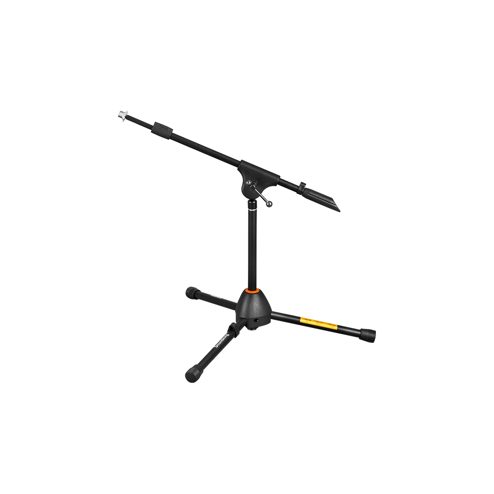 短款麥克風支架,底座部分采用無旋鈕方式鎖緊,可通過腳管的折疊角度控制將底座鎖緊。