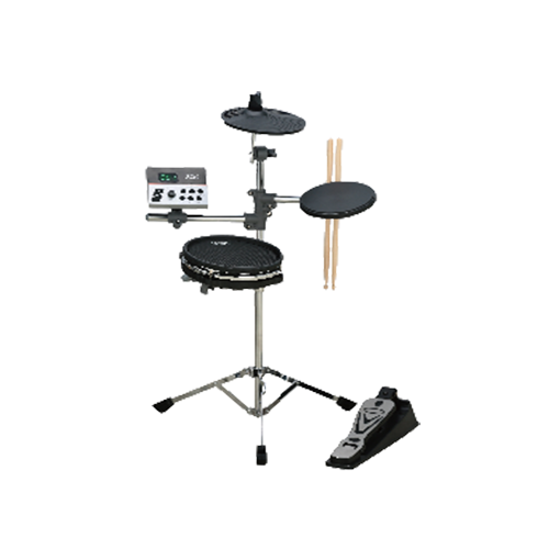 產品采用MINI型獨立可折疊三腳支架,鼓架采用鍍鉻工藝,伸縮式高度可調節,镲片采用鏤空設計,方便攜帶。