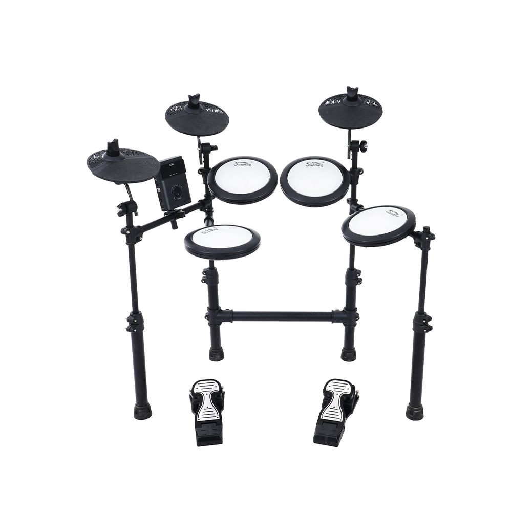 一臺集練習和方便攜帶演出功能與一身的入門級電子鼓,具有較逼真的音色、完整的鼓盤、此套電子鼓采用鼓管伸縮式設計且占地面積小,方便折疊,軍鼓及嗵鼓全部采用7寸單通道網鼓,非常適合新入門學生練習和鼓手外出演出使用。