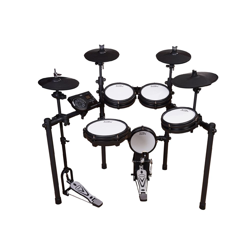 SD560是一款適合鼓手練習和普通演出的網面電子鼓,配置標準的5鼓4镲,網鼓采用音王獨有非接觸式的發明專利,提供了令人滿意的超自然演奏性能,軍鼓采用10寸雙觸發,踩镲采用獨立踩镲,全新設計的音源器,內置有逼真的高質量打擊樂音色,具有軟件在線更新功能,可以兼容各種教學、游戲軟件,滿足各類鼓手的需求