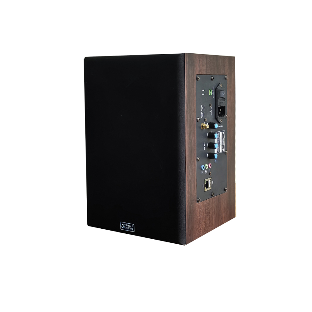 1.高端室內壁掛音箱,深褐色木質箱體,高檔大氣;